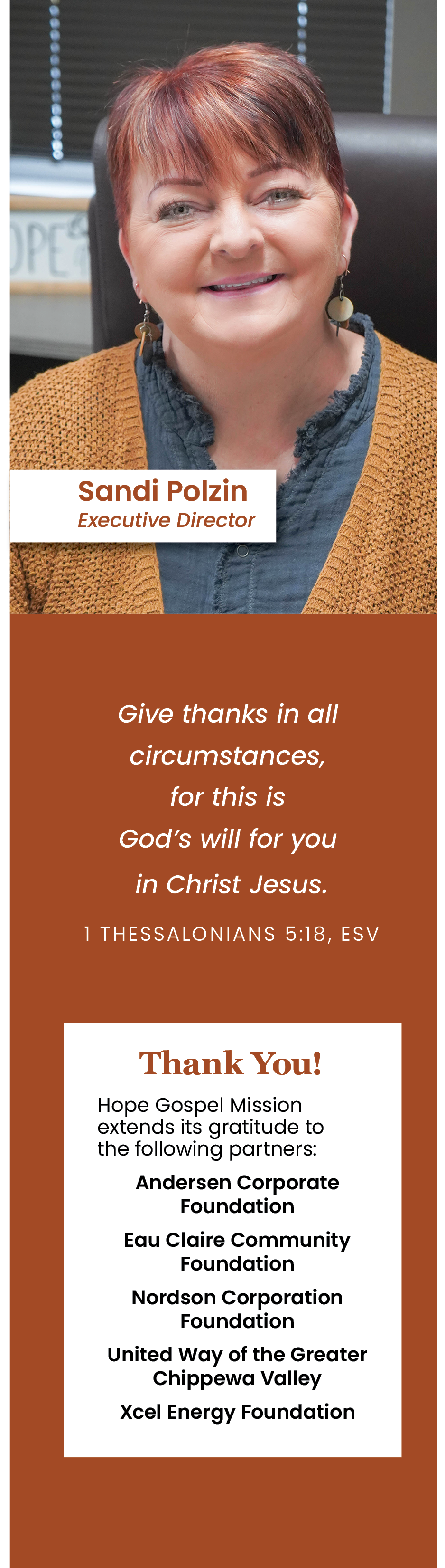 Thanksgiving Day comes just once a year, but giving thanks happens every day at Hope Gospel Mission. ![]() Sandi Polzin |